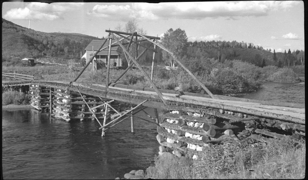 Pont Tiffault sur la rivière Bostonnais à La Tuque, 1945, Archives nationales à Québec, Fonds Ministère de la Culture et des Communications, (03Q,E6,S7,SS1,D2,P28558), I. Beaudet.