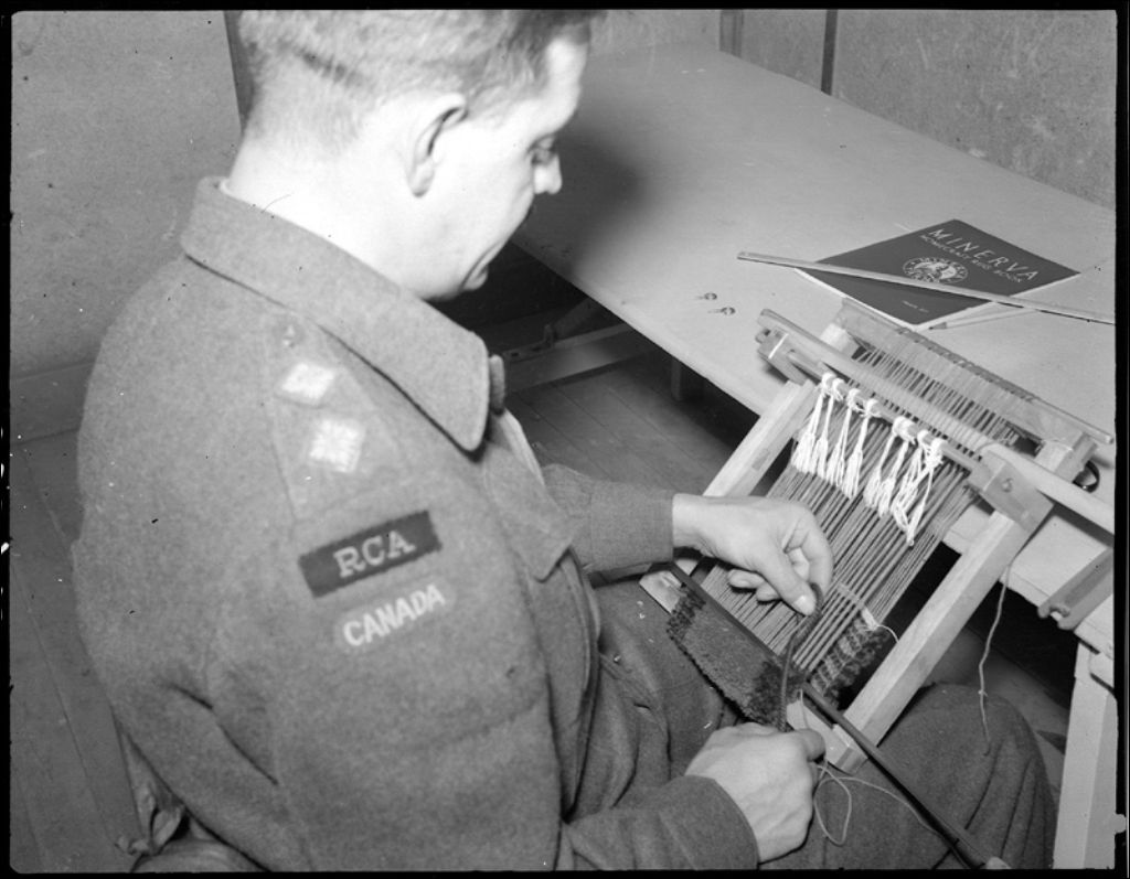 Le lieutenant A. Dubreuil au métier «point noué» à Valcartier