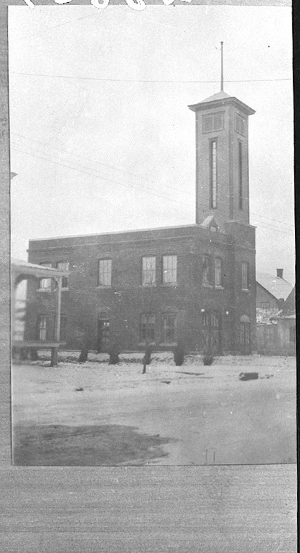 Poste de pompiers à Sainte-Madeleine, comté de Saint-Hyacinthe, 1945, Archives nationales à Québec, Fonds Ministère de la Culture et des Communications, (03Q,E6,S7,SS1,D2,P28634), Ernest Lavigne.