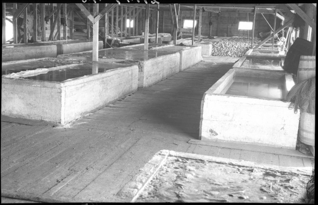 Bassin de ciment pour la salaison de la morue à Grande-Rivière, 1945, Archives nationales à Québec, Fonds Ministère de la Culture et des Communications, (03Q,E6,S7,SS1,D2,P29147), E.L. Désilets.