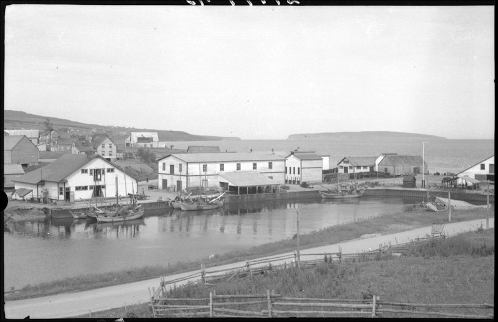 Havre de pêche à l'Anse-à-Beaufils, 1945, Archives nationales à Québec, Fonds Ministère de la Culture et des Communications, (03Q,E6,S7,SS1,D2,P29179), E.L. Désilets.