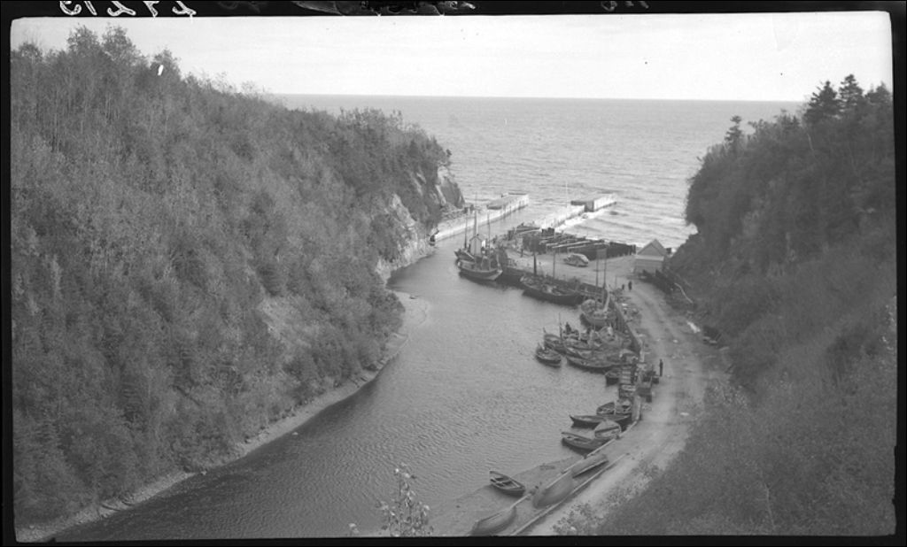 Petit havre de pêche à Gascons-Ouest, 1945, Archives nationales à Québec, Fonds Ministère de la Culture et des Communications, (03Q,E6,S7,SS1,D2,P29213), E.L. Désilets.