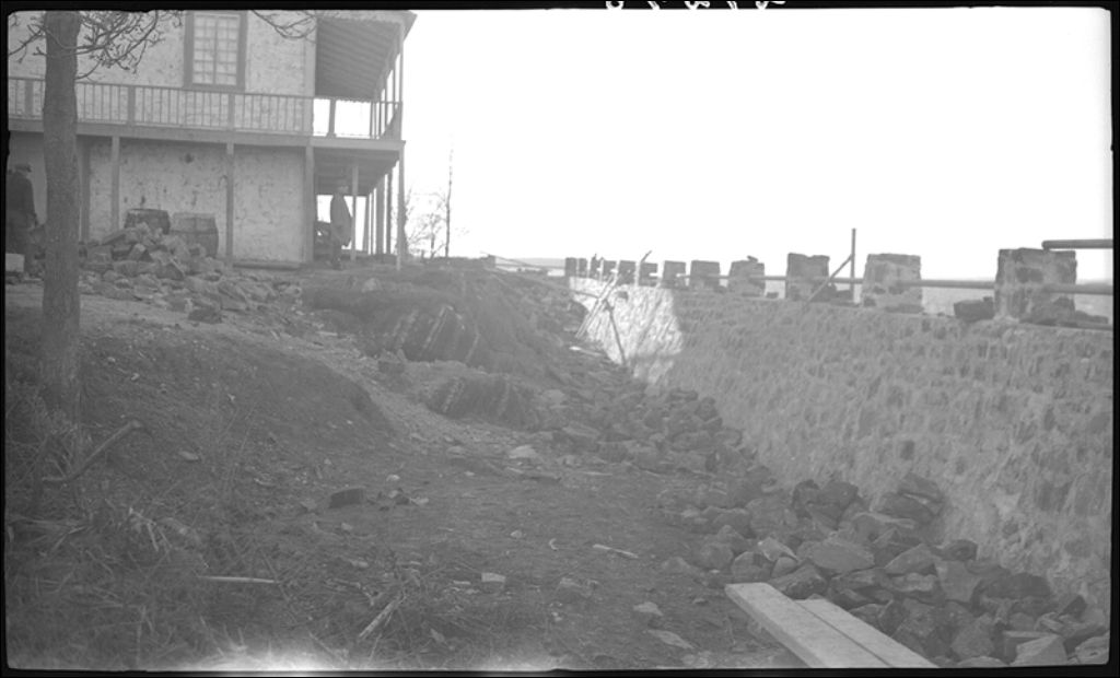 Arrière du mur de maçonnerie de l'école apostolique de Berthier