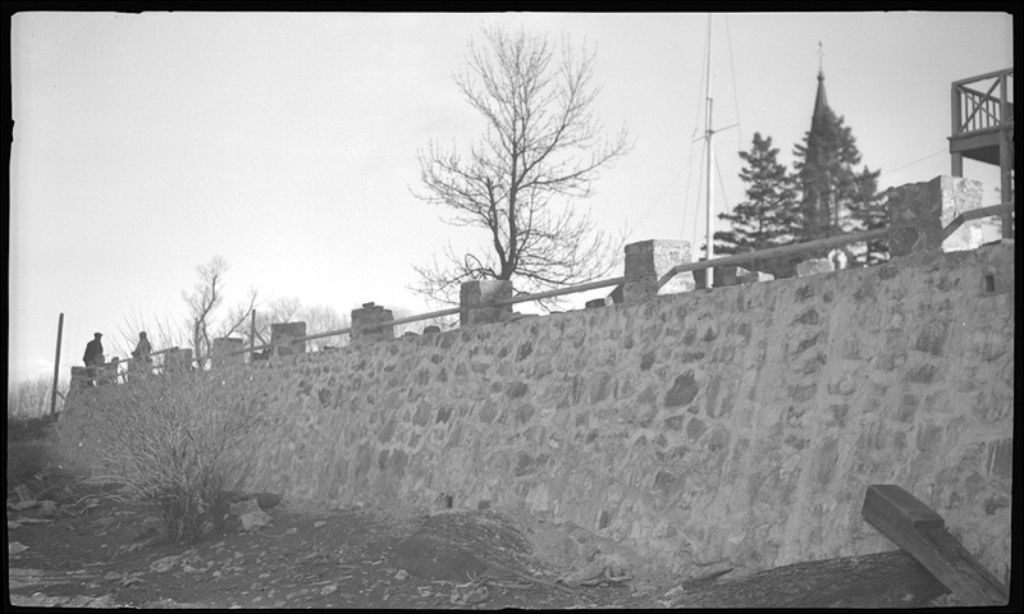 Façade du mur de maçonnerie de l'école apostolique de Berthier
