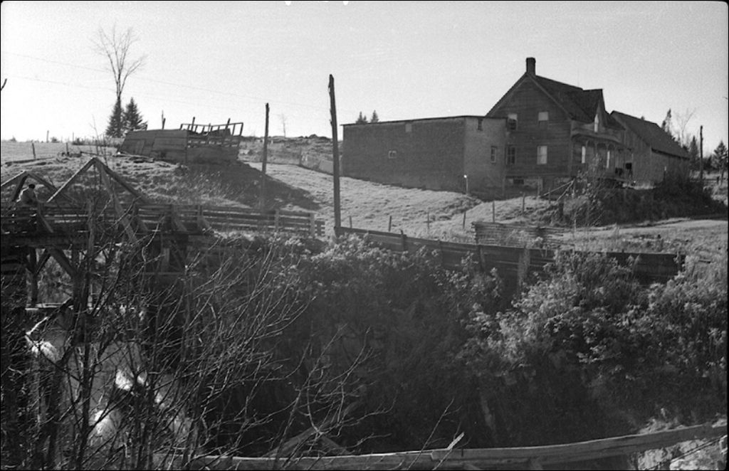 Pont chez René Dion sur la rivière Nicolet à Saint-Camille, comté de Wolfe, 1945, Archives nationales à Québec, Fonds Ministère de la Culture et des Communications, (03Q,E6,S7,SS1,D2,P29276), Marc Dugal.