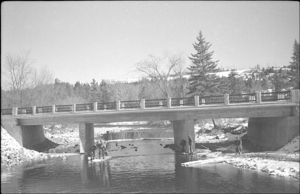 Pont Wright à Dixville, 1945, Archives nationales à Québec, Fonds Ministère de la Culture et des Communications, (03Q,E6,S7,SS1,D2,P29300), Louis-Philippe Poudrier.