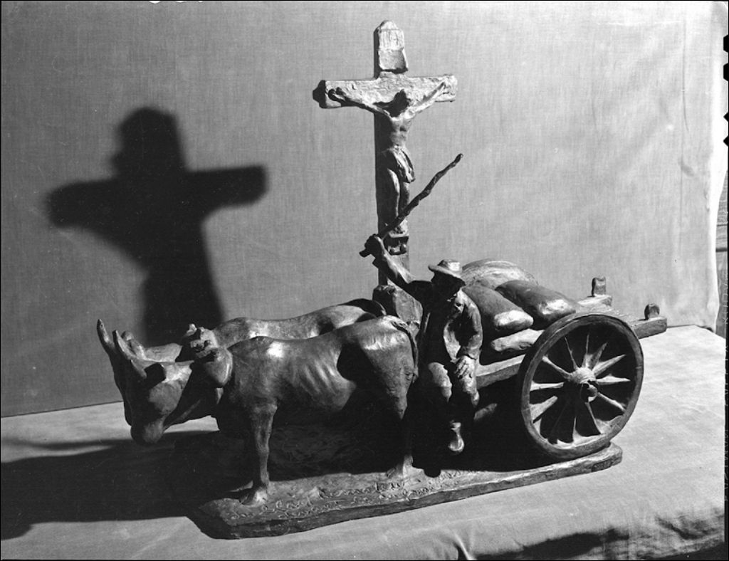 Sculpture: «Le blasphémateur passant devant le calvaire» par Alfred Laliberté