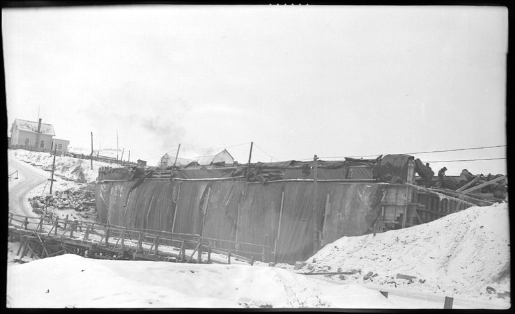 Pont du village sur la rivière Noire à Sainte-Jeanne-d'Arc, comté de Roberval, 1945, Archives nationales à Québec, Fonds Ministère de la Culture et des Communications, (03Q,E6,S7,SS1,D2,P29426), J. Cournoyer.