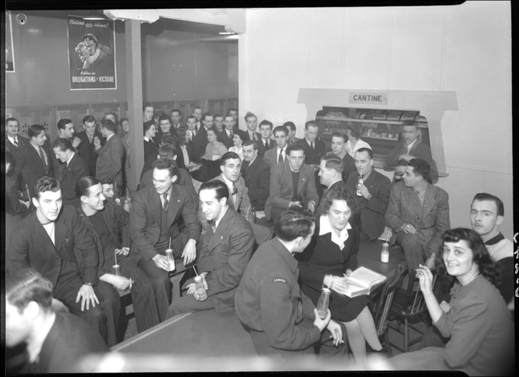 Cantine des vétérans au Collège commercial de réadaptation de Québec, 1946, Archives nationales à Québec, Fonds Ministère de la Culture et des Communications, (03Q,E6,S7,SS1,D2,P30243), G. Villeneuve.