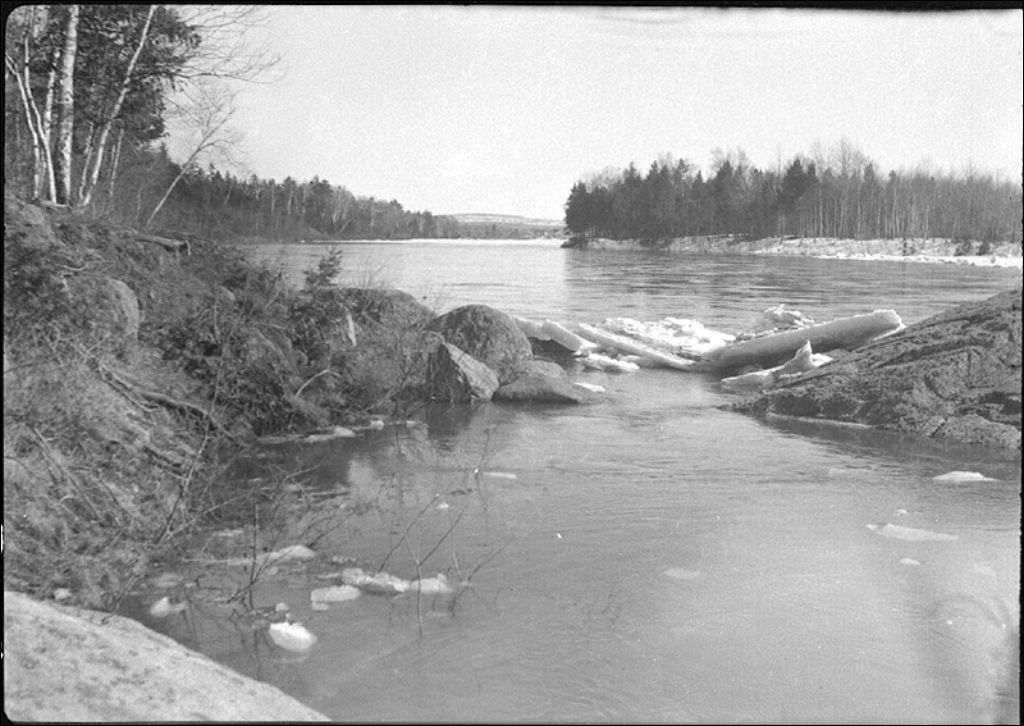 Rivière Chaudière à Taschereau-Fortier, comté de Dorchester, 1946, Archives nationales à Québec, Fonds Ministère de la Culture et des Communications, (03Q,E6,S7,SS1,D2,P30355), A. Hurtubise.