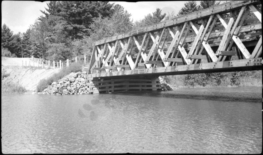 Pont Prud'homme sur la rivière Blanche à Lochaber-Ouest, comté de Papineau, 1941, Archives nationales à Québec, Fonds Ministère de la Culture et des Communications, (03Q,E6,S7,SS1,D2,P3055), Irénée Beaudet.