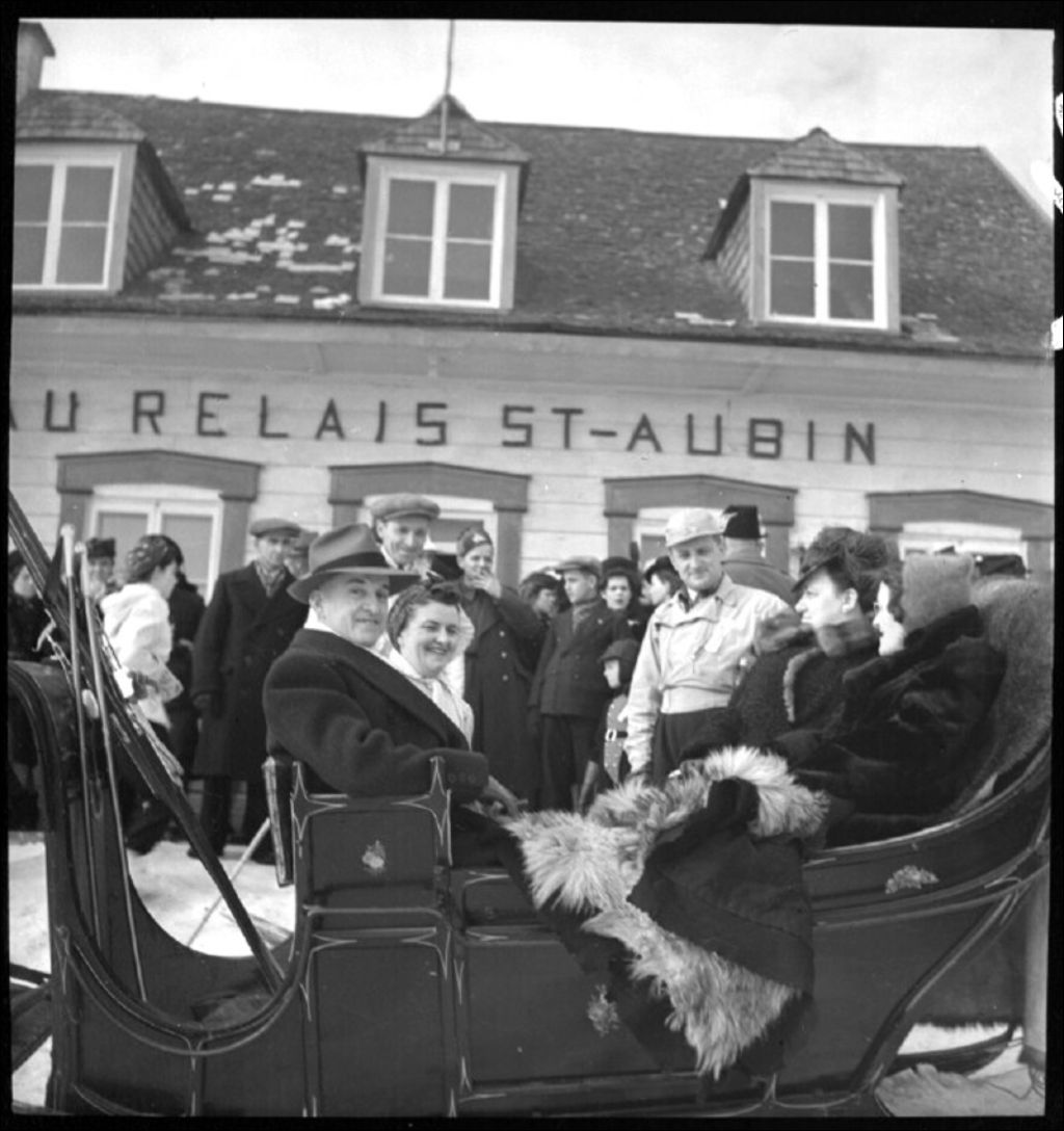 Groupe de personnes dans une calèche aux Éboulements, Relais Saint-Aubin