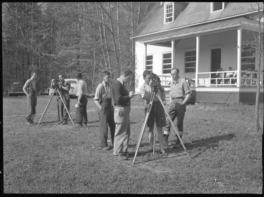 Observation du soleil pour déterminer le nord astronomique à Cap-Tourmente, 1946, Archives nationales à Québec, Fonds Ministère de la Culture et des Communications, (03Q,E6,S7,SS1,D2,P30809), Robert Bellefeuille.