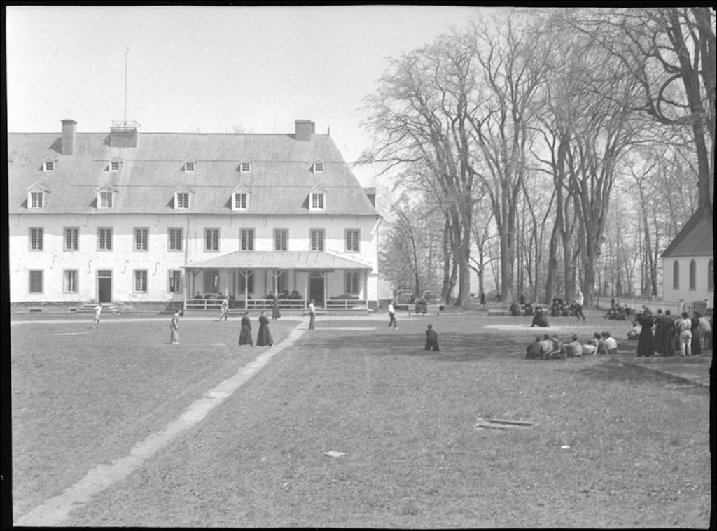 Partie de Baseball au Château Bellevue à Saint-Joachim, 1946, Archives nationales à Québec, Fonds Ministère de la Culture et des Communications, (03Q,E6,S7,SS1,D2,P30810), Photographe non identifié.