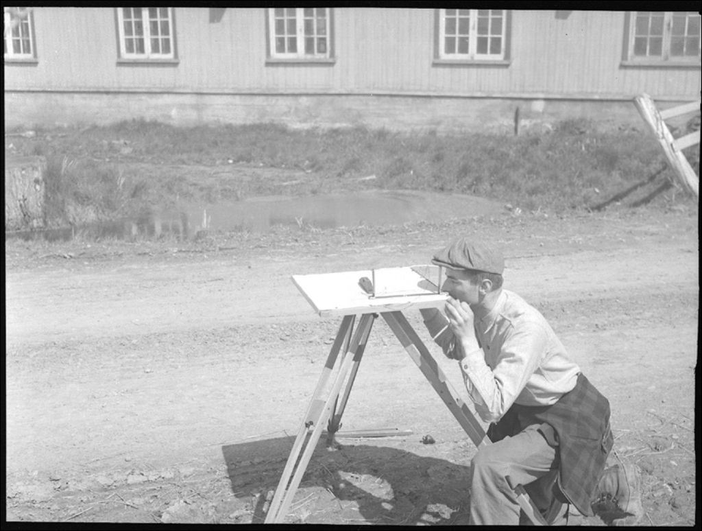 Arpentage à la planchette à Cap-Tourmente, 1946, Archives nationales à Québec, Fonds Ministère de la Culture et des Communications, (03Q,E6,S7,SS1,D2,P30814), Robert Bellefeuille.