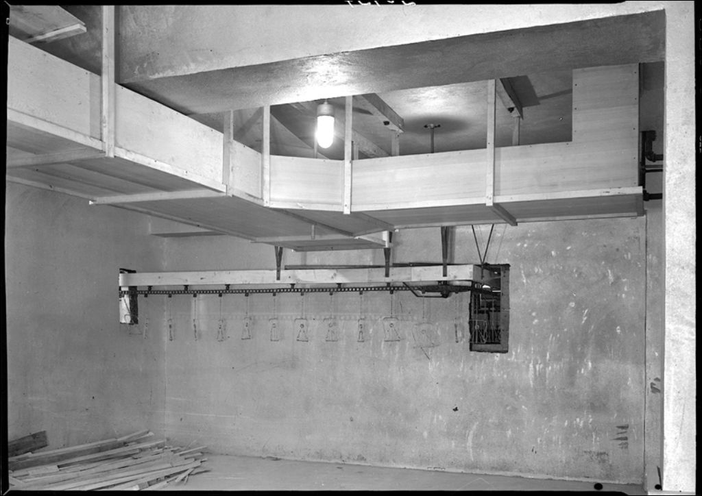 Intérieur du poste d'abattage de volailles de la coopérative fédérée de Québec Ouest, 1946, Archives nationales à Québec, Fonds Ministère de la Culture et des Communications, (03Q,E6,S7,SS1,D2,P30937), Neuville Bazin.
