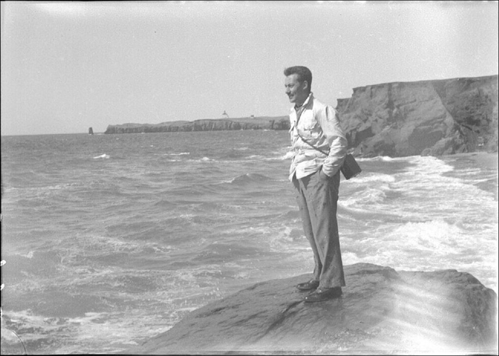 Falaise de grès aux îles de la Madeleine. Au premier plan: M. Piette