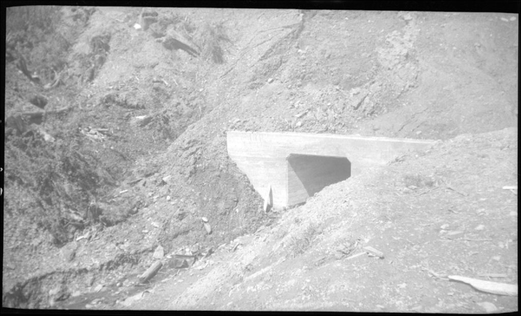 Ponceau en béton armé à Chenier, comté de Rimouski, 1946, Archives nationales à Québec, Fonds Ministère de la Culture et des Communications, (03Q,E6,S7,SS1,D2,P31278), Albert Roy.