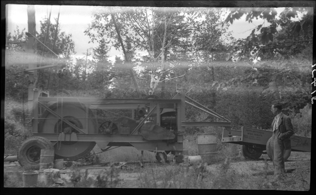 Appareil à creuser des puits artésien en opération à Sept-Îles, 1946, Archives nationales à Québec, Fonds Ministère de la Culture et des Communications, (03Q,E6,S7,SS1,D2,P31431), Eugène Gagné.