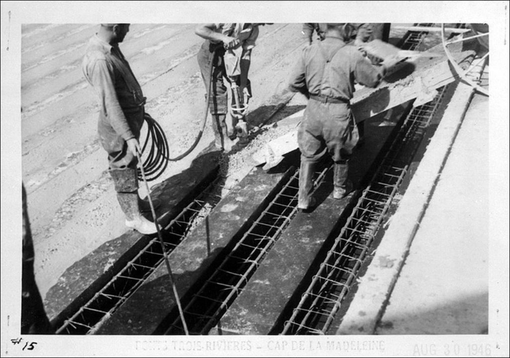 Construction du pont de Trois-Rivières, 1946, Archives nationales à Québec, Fonds Ministère de la Culture et des Communications, (03Q,E6,S7,SS1,D2,P31508), Olivier Desjardins.