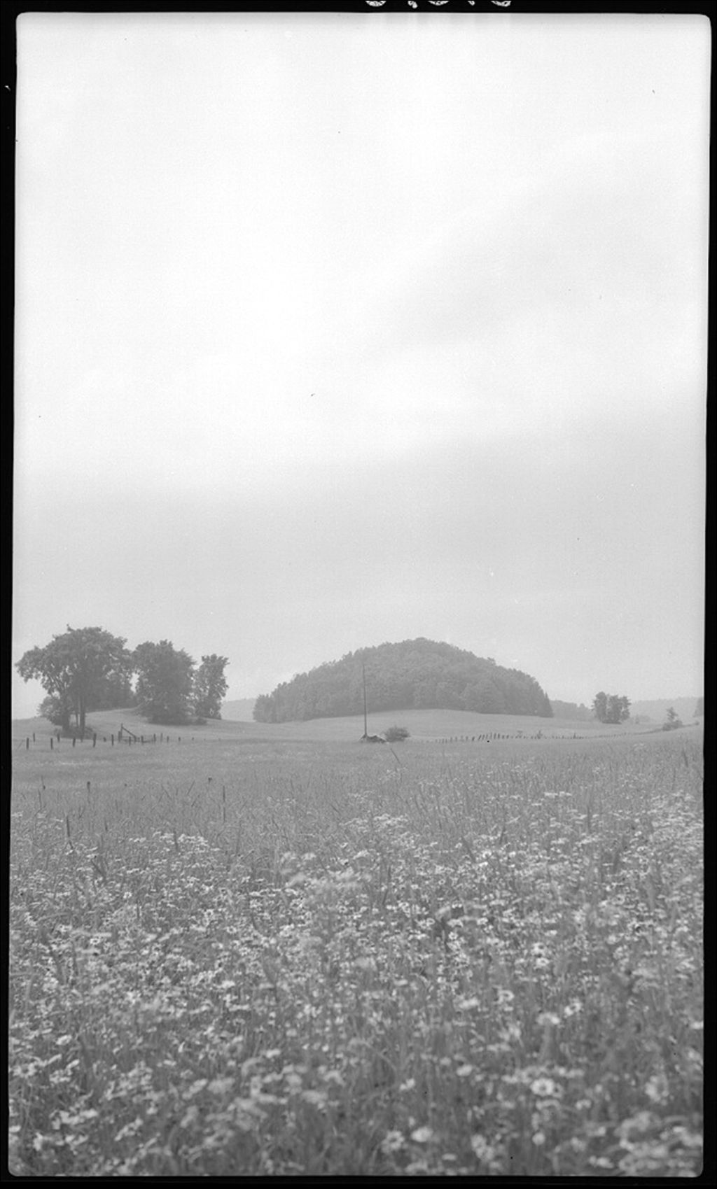 Rocher recouvert d'arbres à Saint-Pierre-de-Wakefield, 1946, Archives nationales à Québec, Fonds Ministère de la Culture et des Communications, (03Q,E6,S7,SS1,D2,P31676), Roch Delisle.