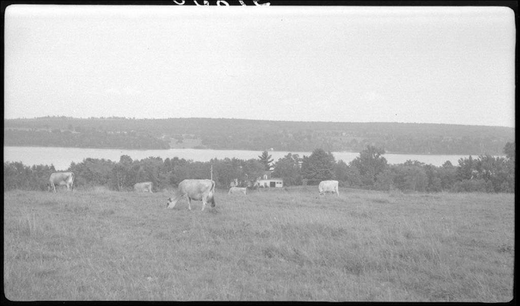 Troupeau Jersey et le lac Memphrémagog à Austin, 1946, Archives nationales à Québec, Fonds Ministère de la Culture et des Communications, (03Q,E6,S7,SS1,D2,P31850), R. Fournier.
