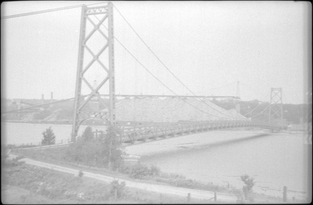 Pont suspendu sur la rivière Saint-Maurice à Grand-Mère, 1946, Archives nationales à Québec, Fonds Ministère de la Culture et des Communications, (03Q,E6,S7,SS1,D2,P32104), Camille Milot.