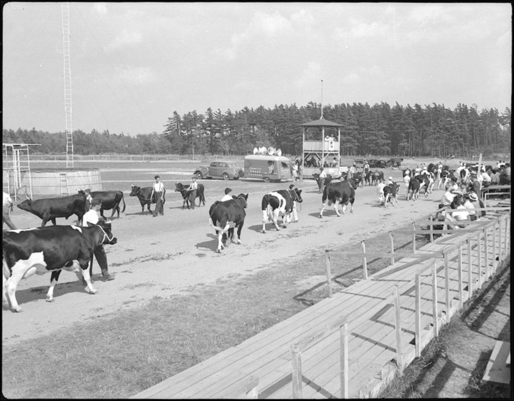 Parade et jugement d'animaux à l'exposition provinciale de 1946 à Saint-Hyacinthe, 1946, Archives nationales à Québec, Fonds Ministère de la Culture et des Communications, (03Q,E6,S7,SS1,D2,P32342), Paul Carpentier.