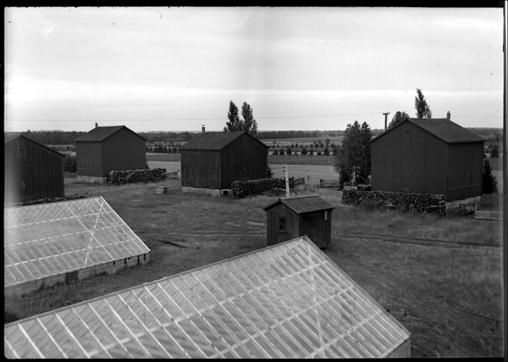 Séchoirs à tabac et serres chaudes, ferme d'Omer Godbout à Saint-Thomas, comté de Joliette