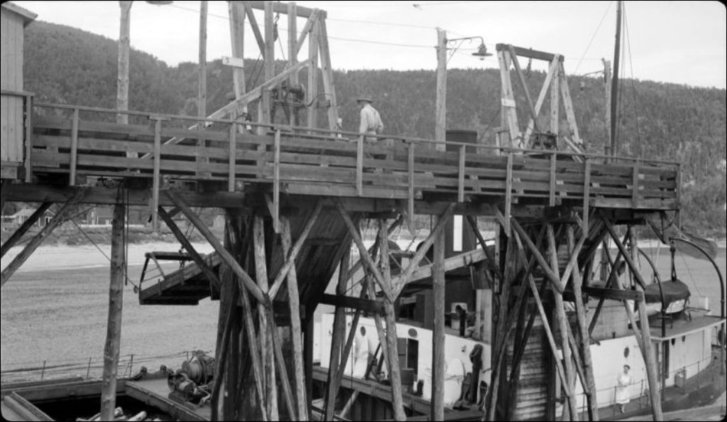 Chargement d'un bateau de bois de pâte à Godbout, 1946, Archives nationales à Québec, Fonds Ministère de la Culture et des Communications, (03Q,E6,S7,SS1,D2,P32734), Benoît Brouillette.