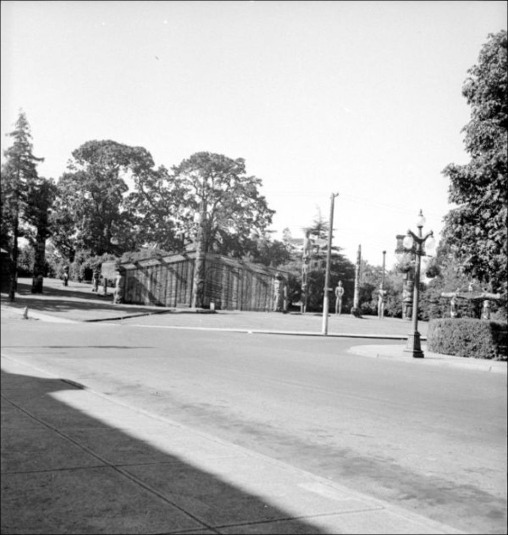 Mats totémiques dans le parc de la ville de Victoria en Colombie-Britannique