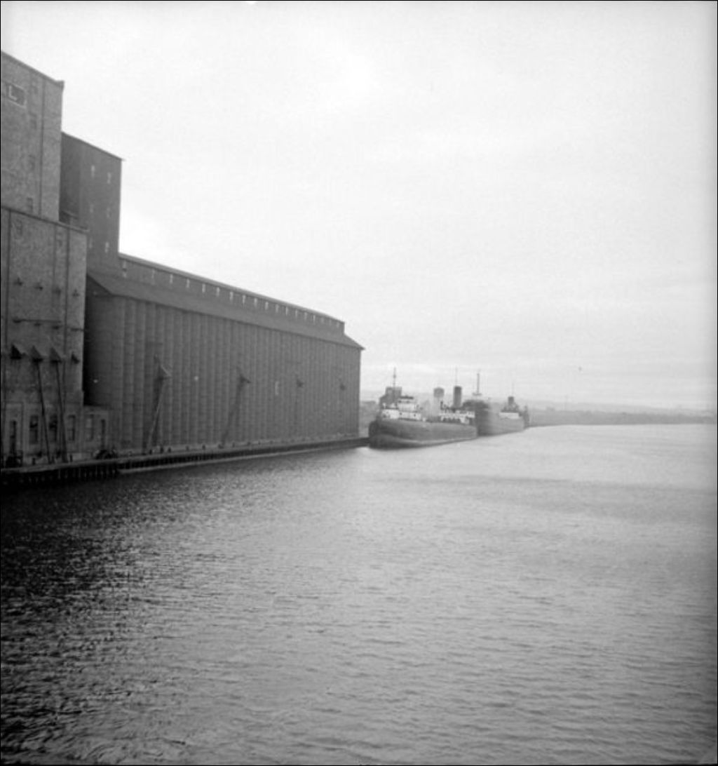 Chargement de blé à Fort William, Ontario, 1946, Archives nationales à Québec, Fonds Ministère de la Culture et des Communications, (03Q,E6,S7,SS1,D2,P33149), R. Dumais.