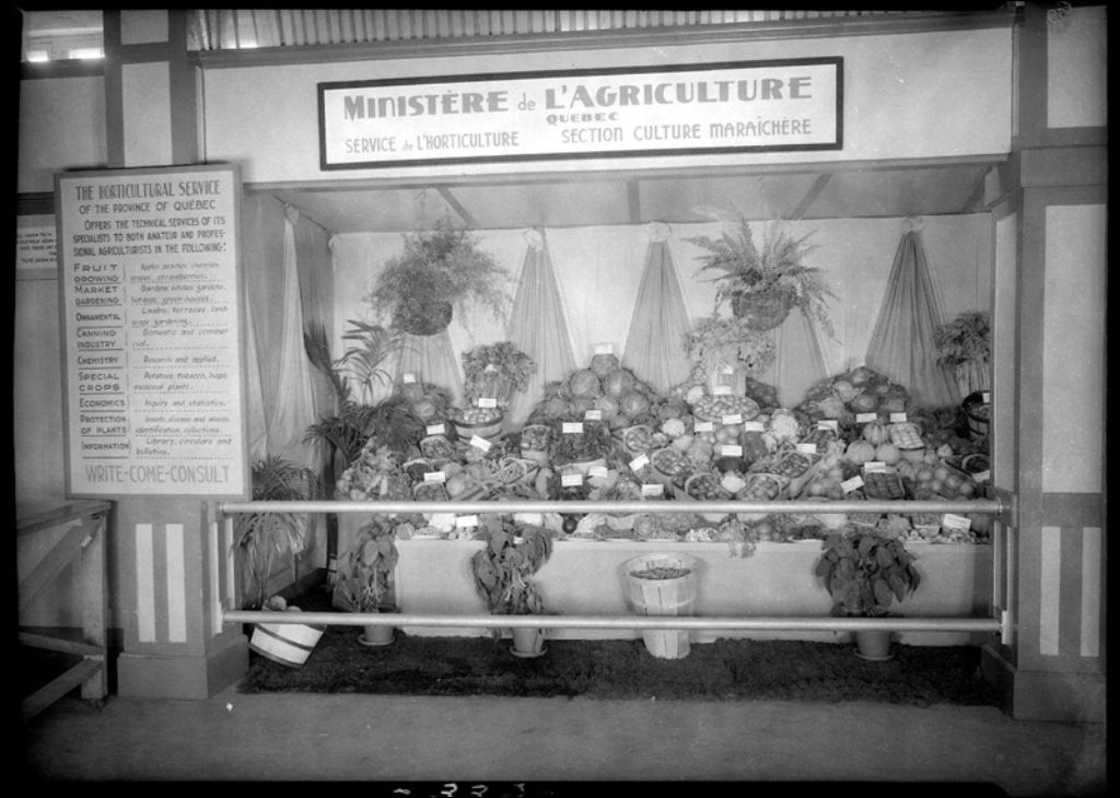 Exposition provinciale de Québec, fruits et légumes divers, septembre 1941, Archives nationales à Québec, Fonds Ministère de la Culture et des Communications, (03Q,E6,S7,SS1,D2,P3320), J.H. Lavoie.