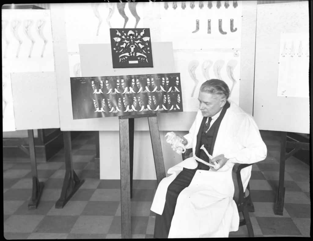 Johan Beetz avec des spécimens chronologiques et ondotologiques