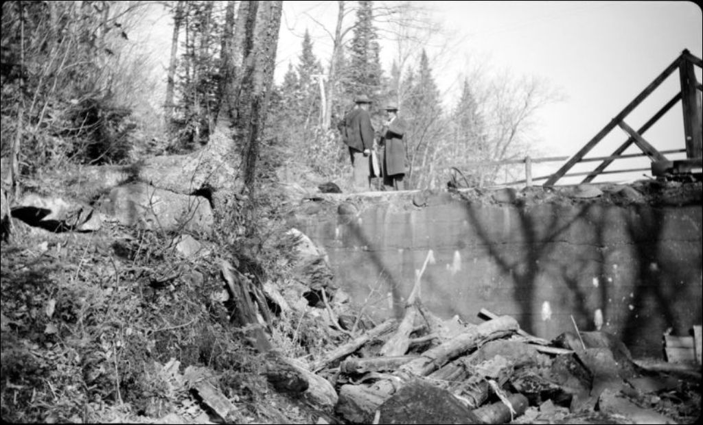 Barrage sur la décharge du lac Sept-Îles, comté de Portneuf, 1946, Archives nationales à Québec, Fonds Ministère de la Culture et des Communications, (03Q,E6,S7,SS1,D2,P34200), Charles-Edmond Deslauriers.