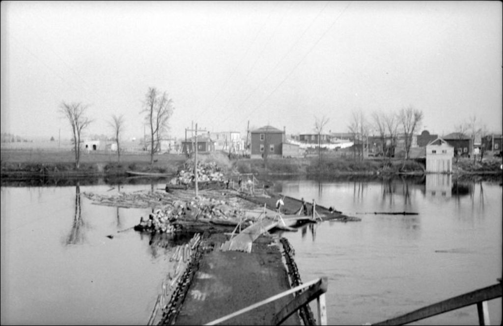 Pont du village de Ferme-Neuve, comté de Labelle, 1946, Archives nationales à Québec, Fonds Ministère de la Culture et des Communications, (03Q,E6,S7,SS1,D2,P34410), M. Dugal.