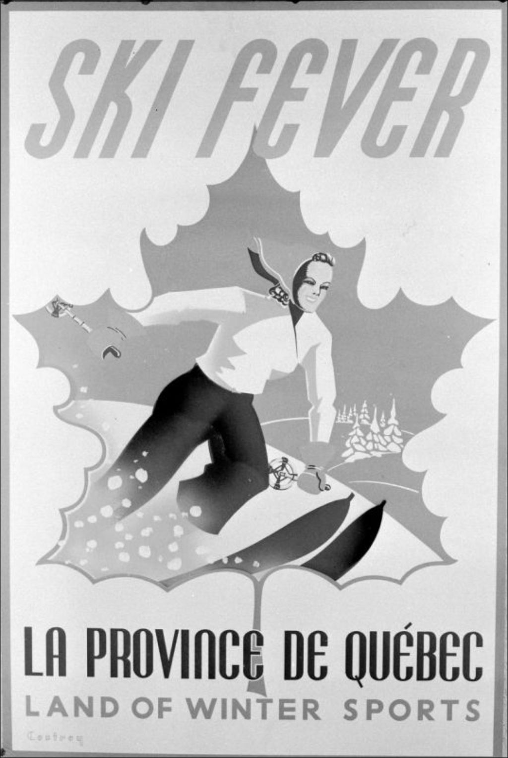 Panneau-réclame pour les sports d'hiver, 1946, Archives nationales à Québec, Fonds Ministère de la Culture et des Communications, (03Q,E6,S7,SS1,D2,P34484), Roland Charuest.
