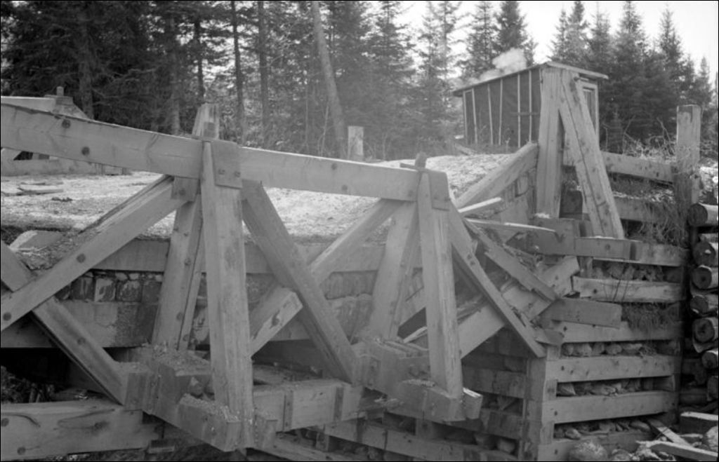 Pont brisé sur la rivière H. Brunch à Cabano, comté de Témiscouata, 1946, Archives nationales à Québec, Fonds Ministère de la Culture et des Communications, (03Q,E6,S7,SS1,D2,P34527), M. Dugal.