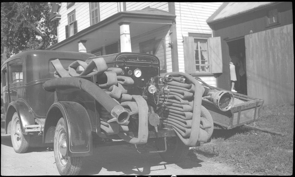 Incendie, pompe-remorque à Sainte-Marie-Salomé, comté de Montcalm, 1941, Archives nationales à Québec, Fonds Ministère de la Culture et des Communications, (03Q,E6,S7,SS1,D2,P3454), E. Lavigne.