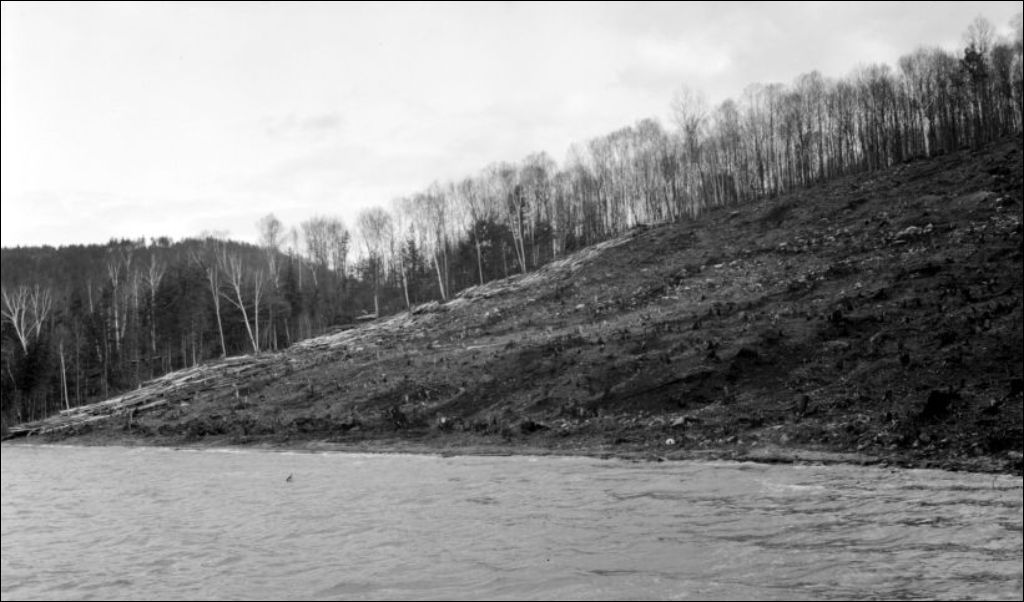 Mine de fer, travaux de défrichement au dessus du gisement, canton Hincks, 1946, Archives nationales à Québec, Fonds Ministère de la Culture et des Communications, (03Q,E6,S7,SS1,D2,P34642), Paul-Émile Bourret.
