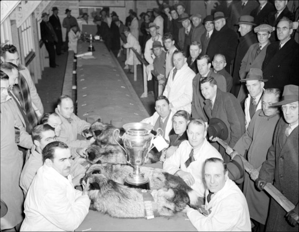 Exposition de renards en novembre 1946, 1946, Archives nationales à Québec, Fonds Ministère de la Culture et des Communications, (03Q,E6,S7,SS1,D2,P34674), L.J. Simard.