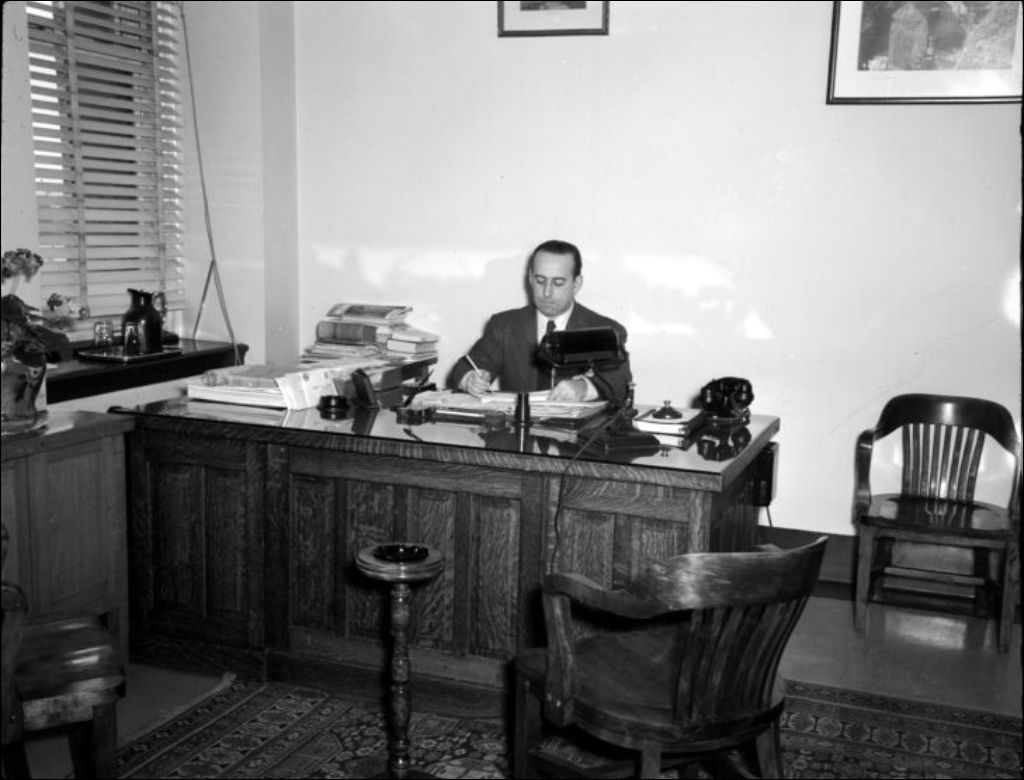 Bureau du Ministre de la Voirie, l'Honorable Antonio Talbot, 1946, Archives nationales à Québec, Fonds Ministère de la Culture et des Communications, (03Q,E6,S7,SS1,D2,P34702), Roland Charuest.