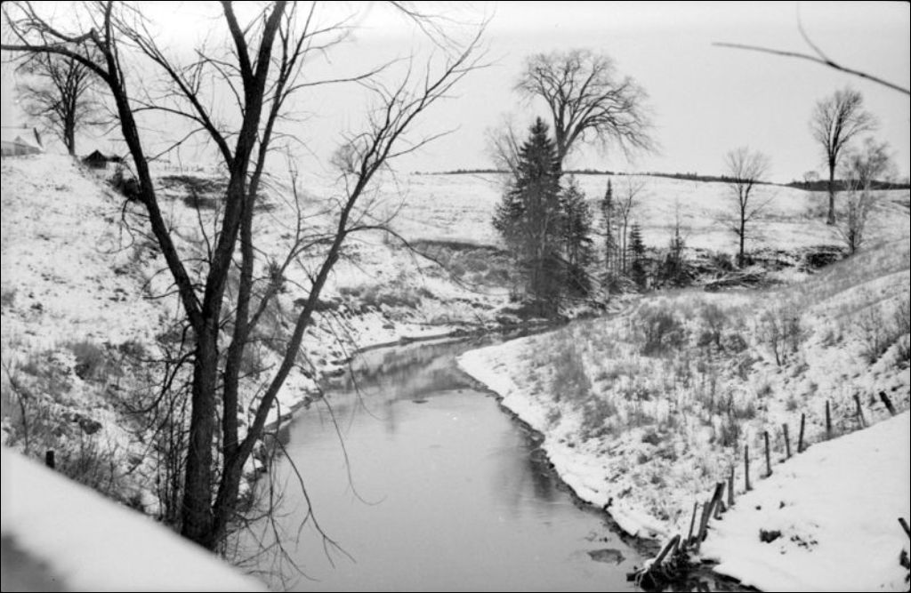 Pont sur la rivière Blanche à Saint-Ambroise-de-Kildare, comté de Joliette, 1946, Archives nationales à Québec, Fonds Ministère de la Culture et des Communications, (03Q,E6,S7,SS1,D2,P34777), M. Dugal.