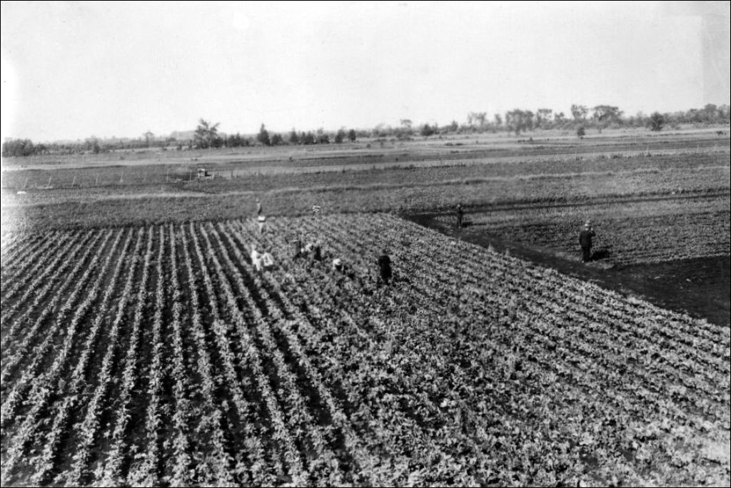 Récolte de laitue chez P. Guinois, comté de Saint-Michel, Montréal, 1946, Archives nationales à Québec, Fonds Ministère de la Culture et des Communications, (03Q,E6,S7,SS1,D2,P34846), Neuville Bazin.