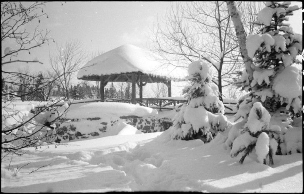 Kiosque sur la rivière Duberger au jardin zoologique de Québec