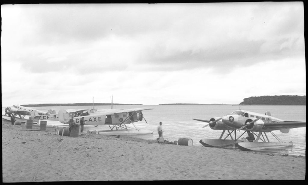 Quebec Airways plane on beach at Havre-Saint-Pierre, 1941-04-29, Archives nationales à Québec, Fonds Ministère de la Culture et des Communications, (03Q,E6,S7,SS1,D2,P356), W.W.Longley.