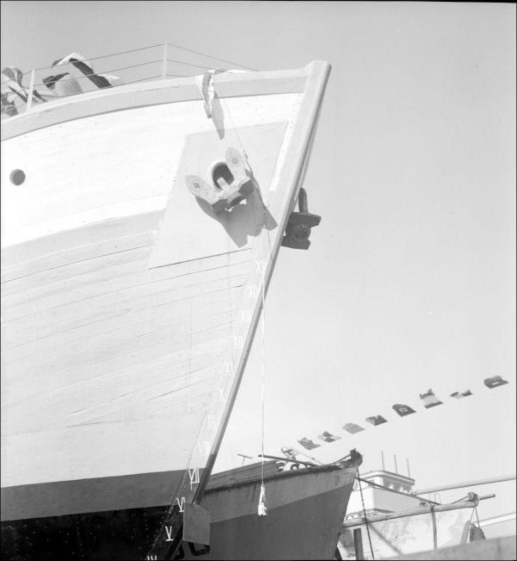 Lancement de bateaux à Saint-Laurent, île d'Orléans, 1947, Archives nationales à Québec, Fonds Ministère de la Culture et des Communications, (03Q,E6,S7,SS1,D2,P35894), Neuville Bazin.