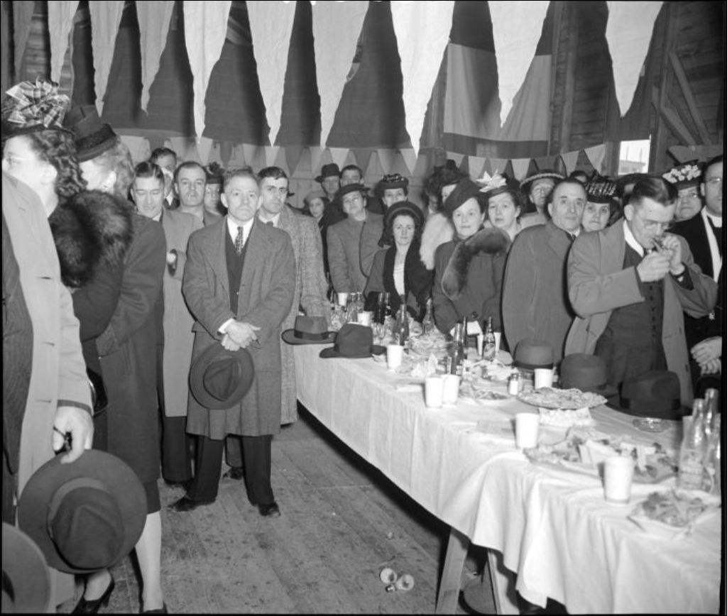 Lancement de bateaux à Saint-Laurent, île d'Orléans, 1947, Archives nationales à Québec, Fonds Ministère de la Culture et des Communications, (03Q,E6,S7,SS1,D2,P35897), Neuville Bazin.