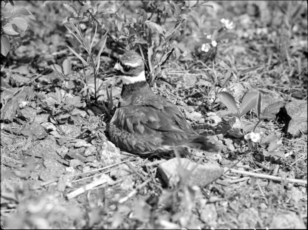 Pluvier Kildir sur son nid au Jardin zoologique de Québec, 1946, Archives nationales à Québec, Fonds Ministère de la Culture et des Communications, (03Q,E6,S7,SS1,D2,P35994), Dr J.A. Brassard.