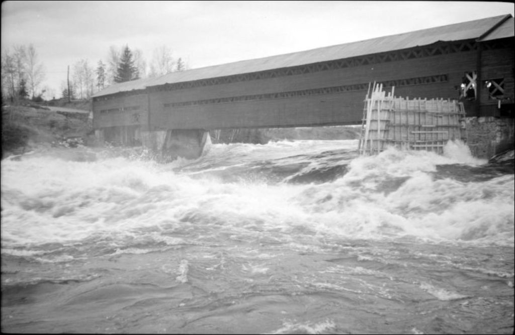Pont Price sur la rivière Mistassini, comté de Roberval, 1947, Archives nationales à Québec, Fonds Ministère de la Culture et des Communications, (03Q,E6,S7,SS1,D2,P36159), Louis-Philippe Poudrier.